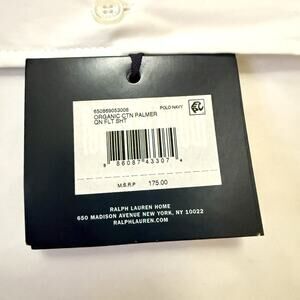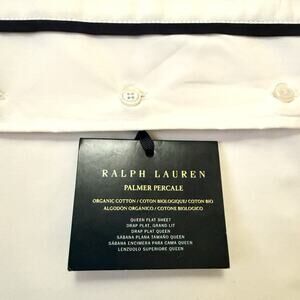 Brand new with tags. Queen flat sheet with polo navy blue trim. Retail $175
