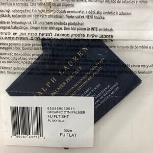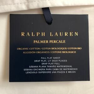 Ralph Lauren Organic Cotton Percale Palmer Full Flat Sheet White Pale Sky Blue New