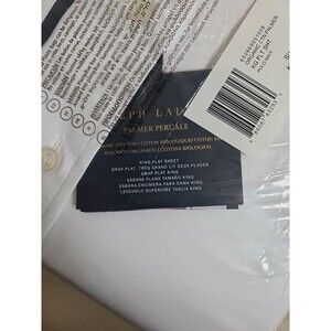 Ralph Lauren Organic Cotton Percale Palmer King Flat Sheet Polo Navy MSRP $200