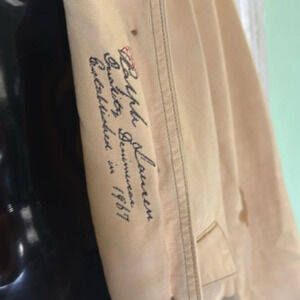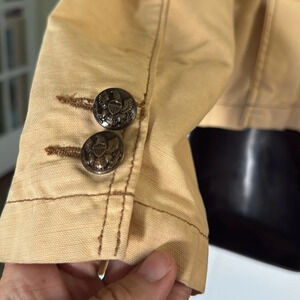 Ralph Lauren original Polo Jeans tan denim crop jacket. Beautiful buttons, it needs a good steam to flatten out the pocket flaps. I would say a smaller XL since it’s a jacket and would go over other clothing. Pit 2 pit approximately 20 inches