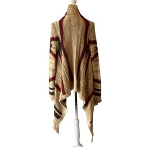 Ralph Lauren Ortega Southwestern Camel Muti Linen Blend Fringe Cardigan Size S/M