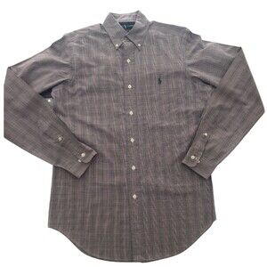 Ralph Lauren Oxford Button Front Shirt Men Small Classic Fit Purple Green Plaid