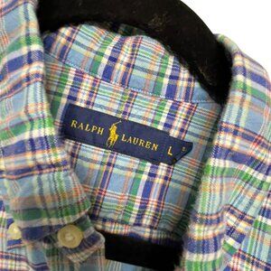 Ralph Lauren Oxford Button Up Shirt Mens L Plaid Blue Flesh Pony L/S Casual