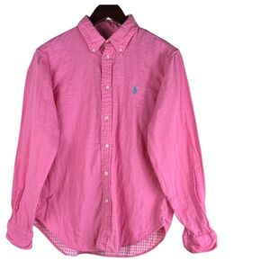 Ralph Lauren Oxford Shirt Button Down Sz Large Bright Pink Long Slv Work Dress