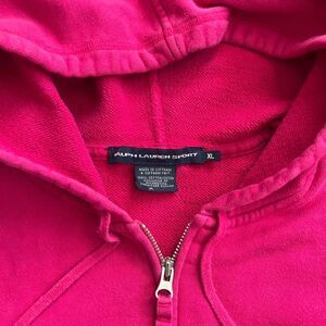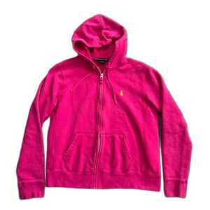 Ralph Lauren Sport zip up hoodie pink fuchsia embroidered polo logo yellow horse streetwear Y2K preppy grungy back to school skater girl indie quiet luxury
