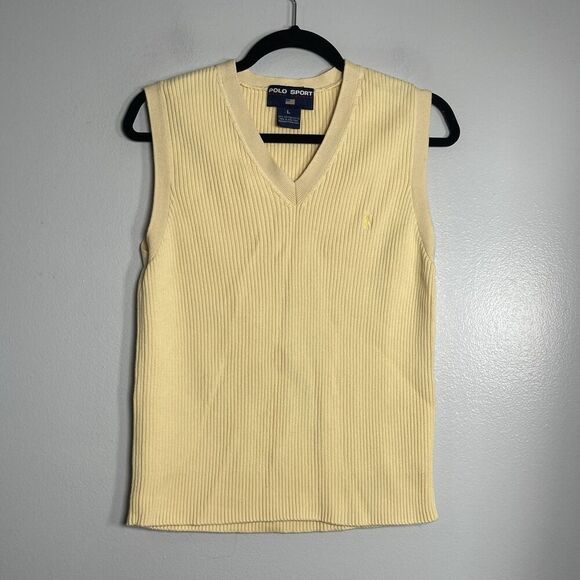 Ralph Lauren POLO SPORT Vintage Ribbed Sweater Vest Large Yellow Classic Preppy