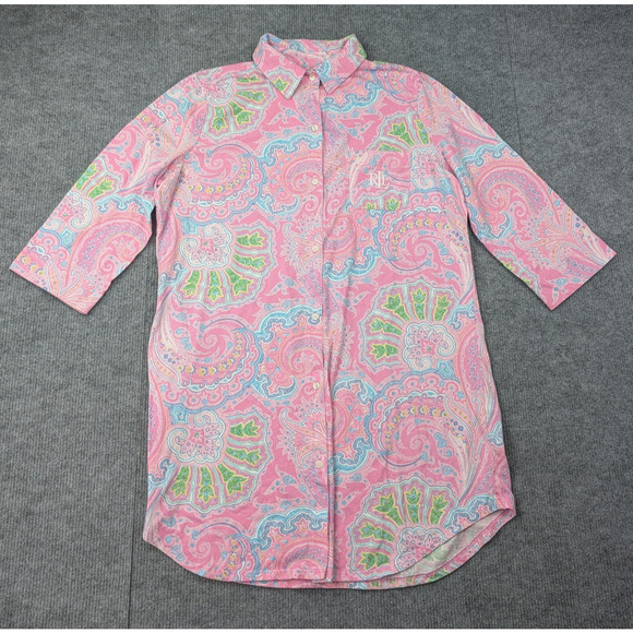 Ralph Lauren Pajama Shirt Dress Womens Medium Pink Paisley Preppy Cotton Comfy