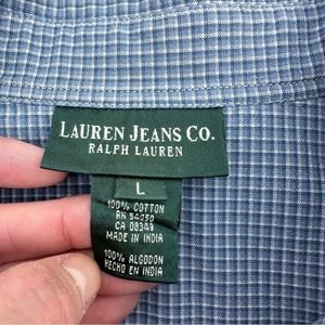 Ralph Lauren Pajama Top Womens Long Sleeve Lace Button Down Cotton Blue Large