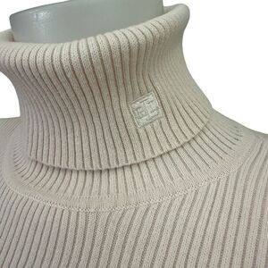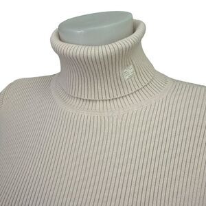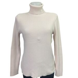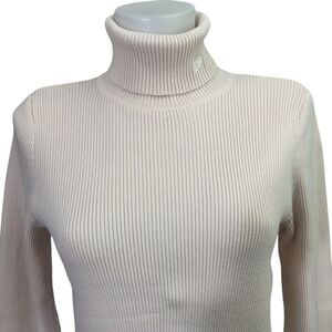 Ralph Lauren Pale Pink Ribbed Knit Turtle Neck Sweater Vintage RL Logo Large