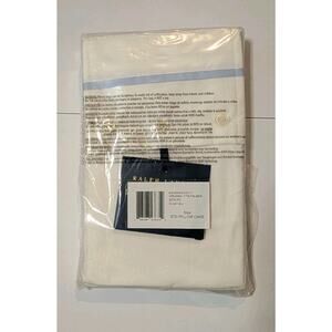 Ralph Lauren Palmer Percale Organic Standard Pillowcases Pkg of 2 White Blue NWT
