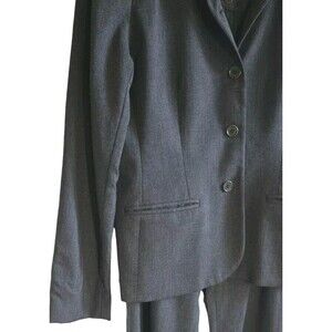 Elevate your style with this stunning Ralph Lauren pant jacket suit for women. The 1990s vintage set is crafted from worsted wool material, featuring a gray color and a tailored look. The top and pants are perfectly tailored to fit a regular size type, with a faux fur collar that adds a touch of luxury to the overall design.