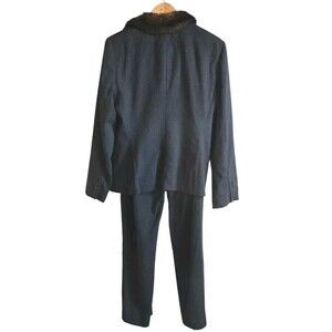 Ralph Lauren Pant Jacket Suit Women 10 Gray Faux Fur Collar Worsted Wool Vintage