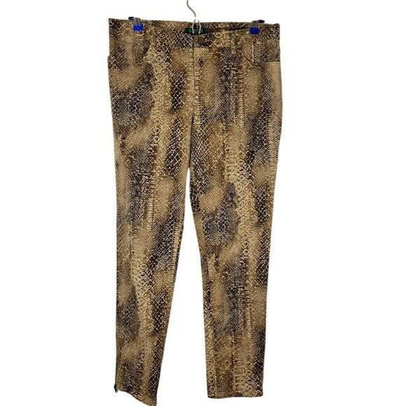 Ralph Lauren Pant Women 10 Brown Snakeskin Straight Ankle Neutral Mob Wife 80s