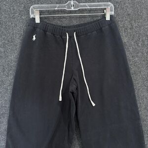 Ralph Lauren Pants Womens Small Black Wide Leg Sweatpants Drawstring Pony Fleece