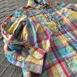 Gorgeous pastel plaid button down by Ralph Lauren in size 5. Overall good used condition.