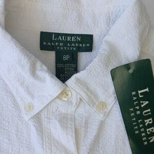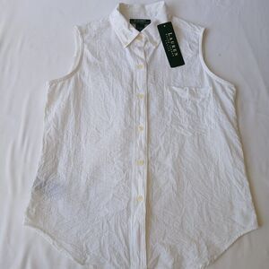 Ralph Lauren Petite 8 Shirt Sleeveless Button Up LRL Embroidered White NWT