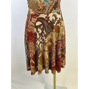 Ralph Lauren Petite Short Sleeve V Neck Dress Brown Red Print Classic Size PXS