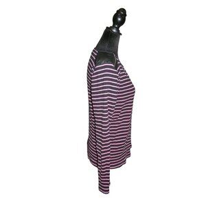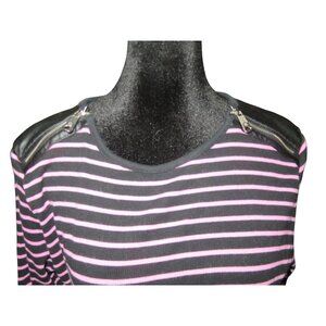 Ralph Lauren Pink & Black Striped long sleeve leather shoulders sweater size XL