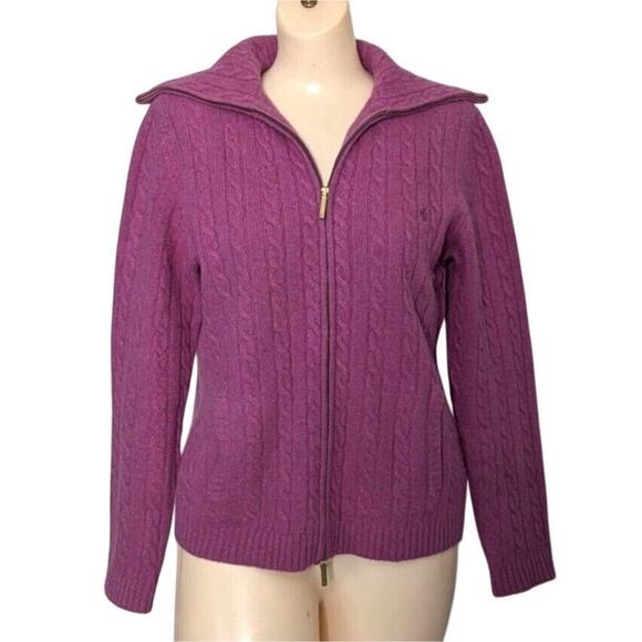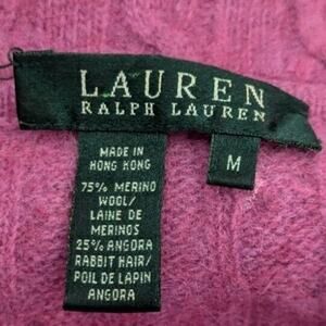 Ralph Lauren Pink Cableknit Angora Merino Wool Collared Cardigan Women Medium