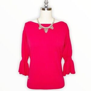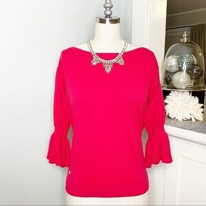 Lauren Ralph Lauren Pink Flounce Sleeve Crew Neck Sweater. Color is a hot pink. Lightweight and stretchy. New with tags. Size Small.