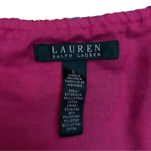 Colorful paisley pattern skirt by Lauren from Ralph Lauren. Beautiful print in magenta pink, purple, orange, and green. Peasant skirt. Tiered skirt. Midi skirt. Full skirt. A line skirt. Size large. Elastic waistband. 100% cotton. Fully lined. In excellent condition. Boho style. Vibrant colors. Classic Ralph Lauren design.