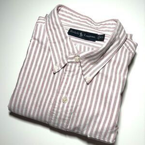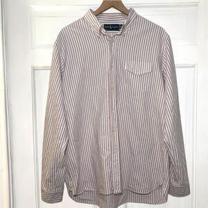 Ralph Lauren Pink White Stripped Men's Xl Pocket Long Sleeve Button Down Shirt