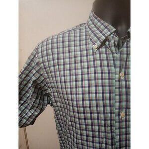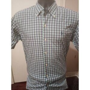 Ralph Lauren Plaid Andy Camp Button Down Short Sleeve Shirt Small S Green Blue