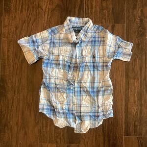 Short sleeve plaid button down by Ralph Lauren in very good preowned condition. No flaws. Barely any signs of use. In need of ironing.