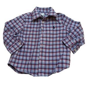 Ralph Lauren Plaid Button Down Shirt sz 18 M Red White Blue Plaid Preppy Classic