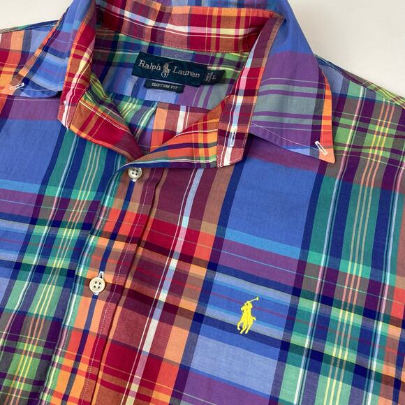 Ralph Lauren Plaid Button Up Custom Fit Colorful Yellow Pony Mens Large