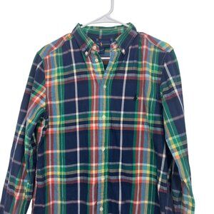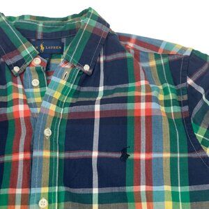 Ralph Lauren Plaid Button-Down Shirt Young XL Multicolor Long Sleeve 100% Cotton