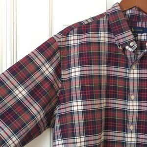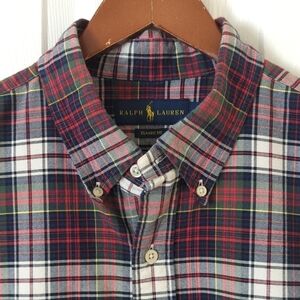 Ralph Lauren Plaid Cotton Classic Fit Long Sleeve Button Down Shirt Red Navy XL