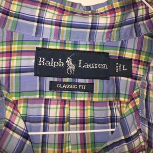 New condition. Classic Fit, Large. Blue/green/yellow/pink plaid.