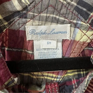 Ralph Lauren Plaid Shortall Overalls Cotton 6mo