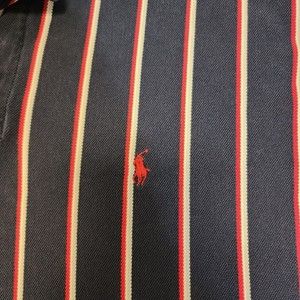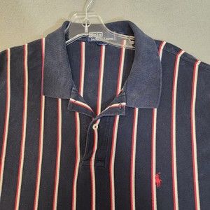 Ralph Lauren Plolo Shirt Mens 2XL Blue with Stripe Short Sleeve Vintage