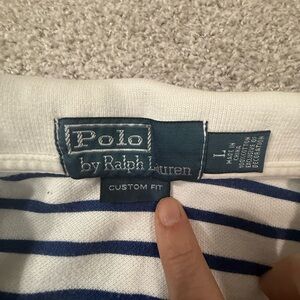 Ralph Lauren Pole white with blue stripes Custom Fit Size L