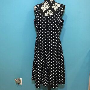 Ralph Lauren Polka Dot Woman's Dress EUC Rockabilly Size 12 Black & White Retro