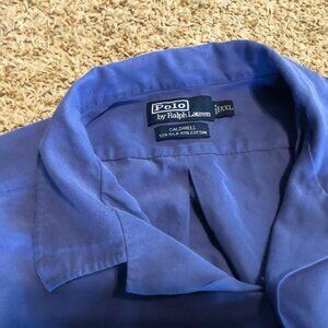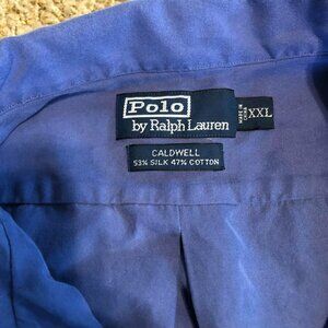 Ralph Lauren Polo 53% Silk Caldwell XXL Blue Button Down Short Sleeve Shirt