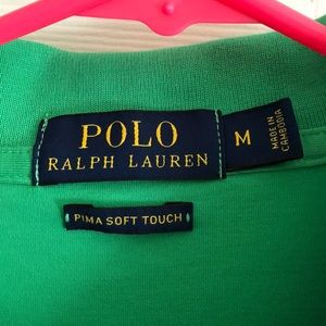 Ralph Lauren Polo, very soft material. Worn only once. Very nice green color, excellent condition. On the small side for a medium, fits more like a small.