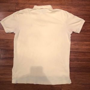 EUC light yellow RL polo. Worn only a handful of times because it is too small for me. Very small and faint discoloration under arm which can be seen in the 3rd picture.