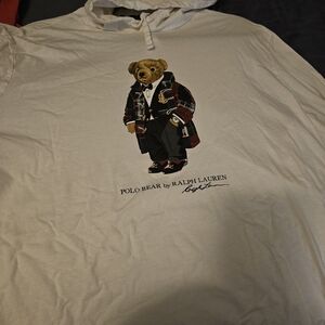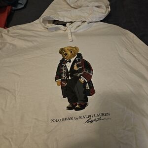 White hoodie featuring the iconic Polo Bear graphic by Ralph Lauren. Stylish and comfortable.