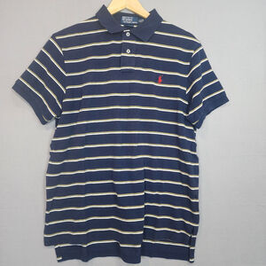 Ralph Lauren Polo Blue and Yellow striped Short Sleeve Pull Over Men's Sz XL