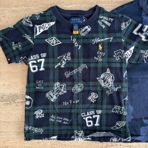 Both shirts in great condition. Wash wear on the varsity plaid t-shirt, but this is normal for a cotton tee. Both size 6.