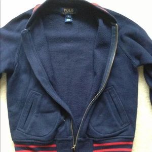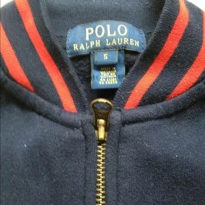 Worn by my son minimally. Size 5 Ralph Lauren Polo Boys Navy Cotton baseball jacket. No rips or stains.
