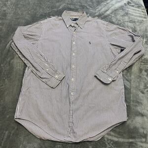 Ralph Lauren Polo Button Down Shirt Men’s 16 Purple, White Stripped Classic Fit