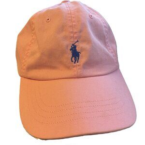 The Iconic Cotton Ralph Lauren Polo Chino Ball Cap, Color: Carmel Pink /Jewel Blue, adjustable buckled strap