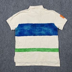 Ralph Lauren Polo Custom Fit Shirt Medium Ivory Paint Splatter Big Pony 0649