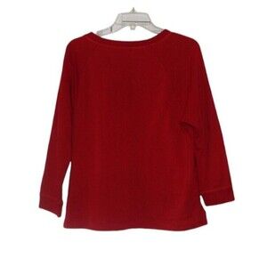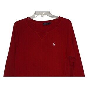 Polo Ralph Lauren red sweatshirt. Embroidered pony accent. Crew neck and long sleeves. Split hem. Machine washable. Size M.