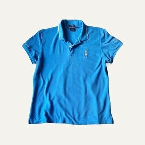Ralph Lauren Polo Golf Shirt Big Pony Tailored Fit Cotton Mesh Blue Y2K