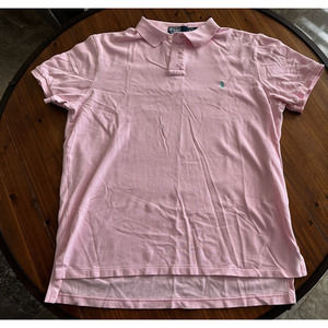 Ralph Lauren Polo Golf Shirt Custom Fit Mens XL Pink w/Teal Pony Short Sleeve